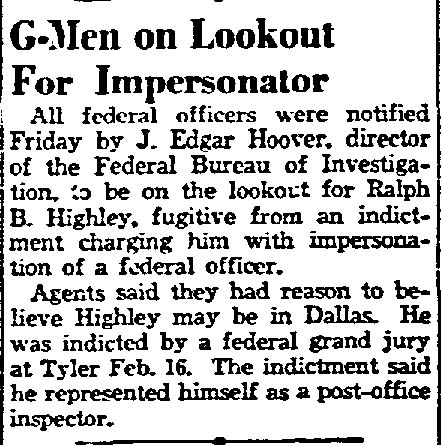 G-MEN ON THE LOOKOUT FOR IMPERSONATOR