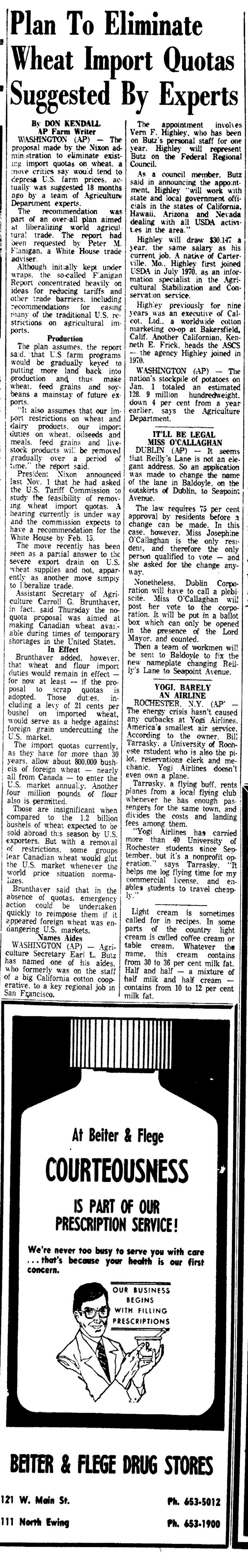 PLAN TO ELIMINATE WHEAT IMPORT QUOTAS SUGGESTED BY EXPERTS
